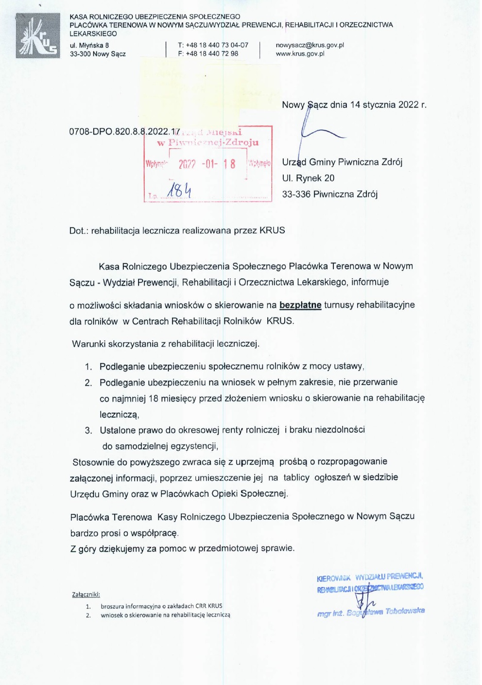 KRUS: Wniosek o skierowanie na bezpłatne turnusy rehabilitacyjne