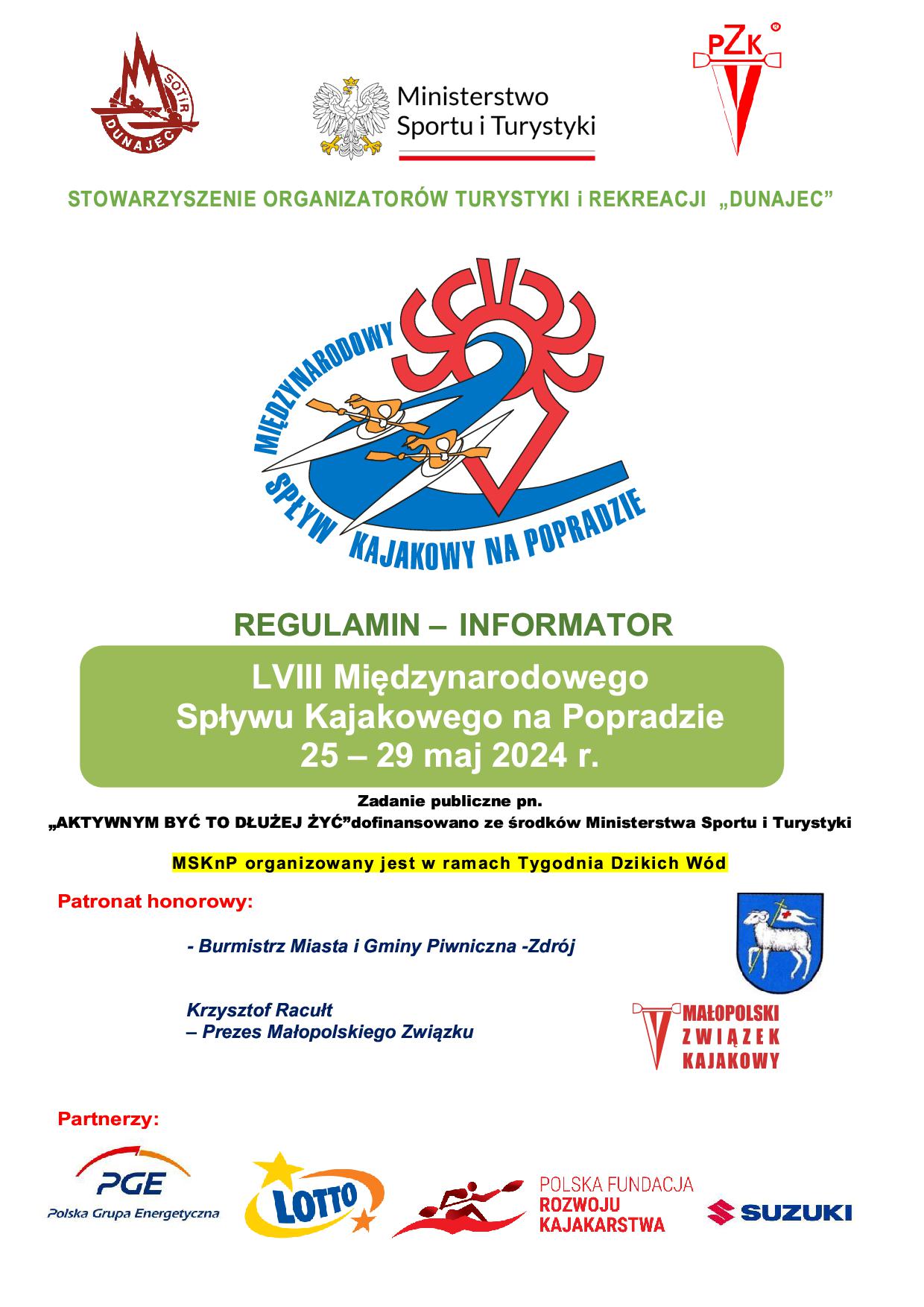 - REGULAMIN - INFORMATOR LVIII Międzynarodowy Spływ Kajakowy na Popradzie 25-29.05.2024 r.