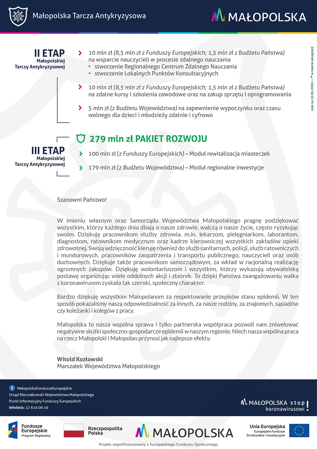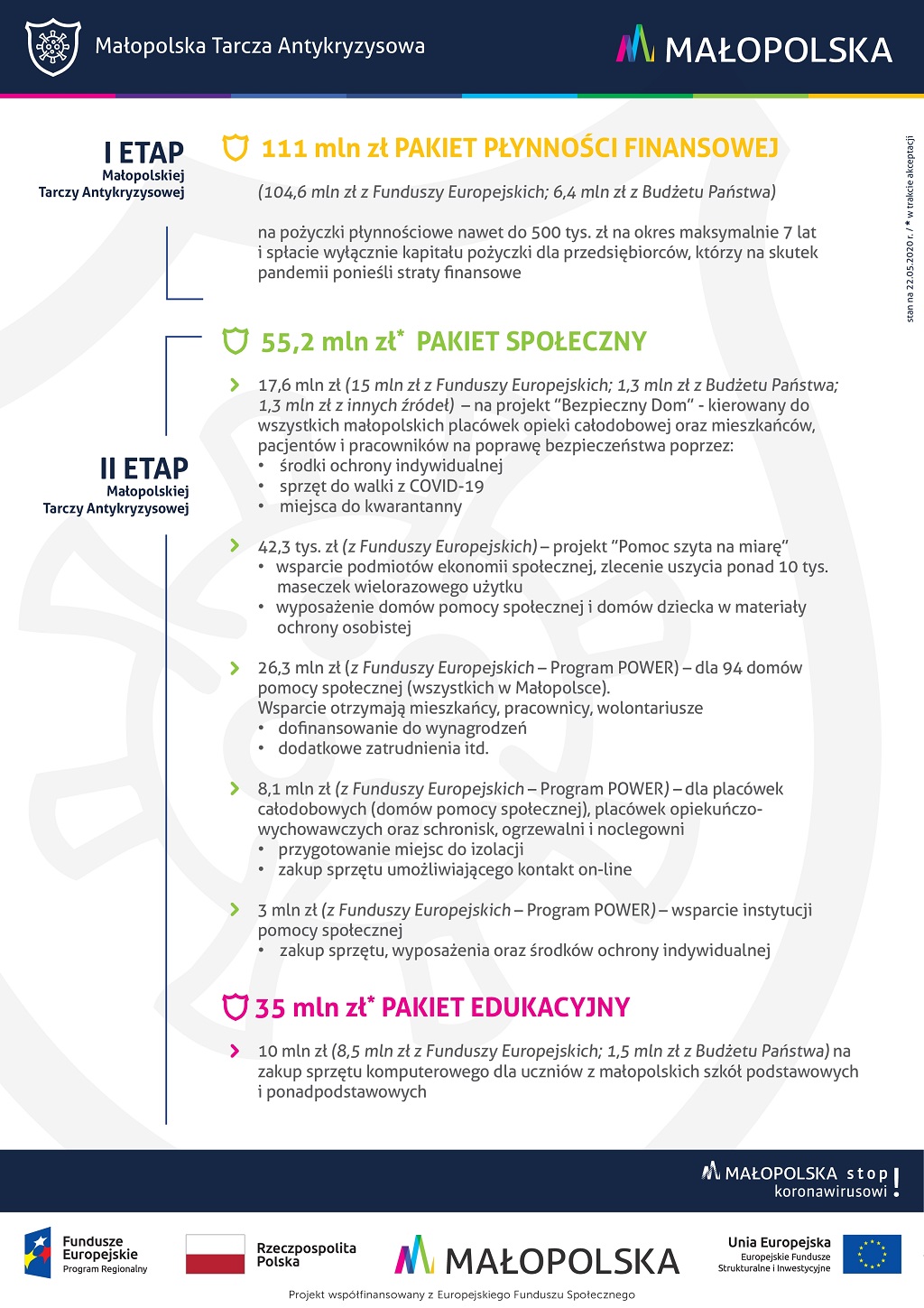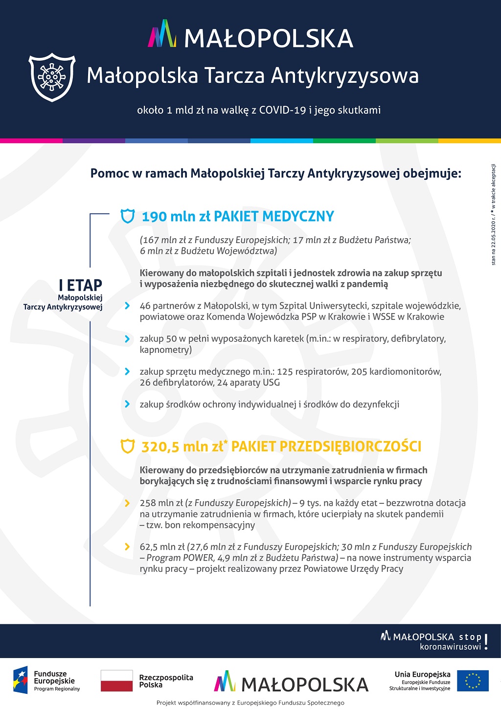 Małopolska Tarcza Antykryzysowa, stan na dzień 22.05.2020