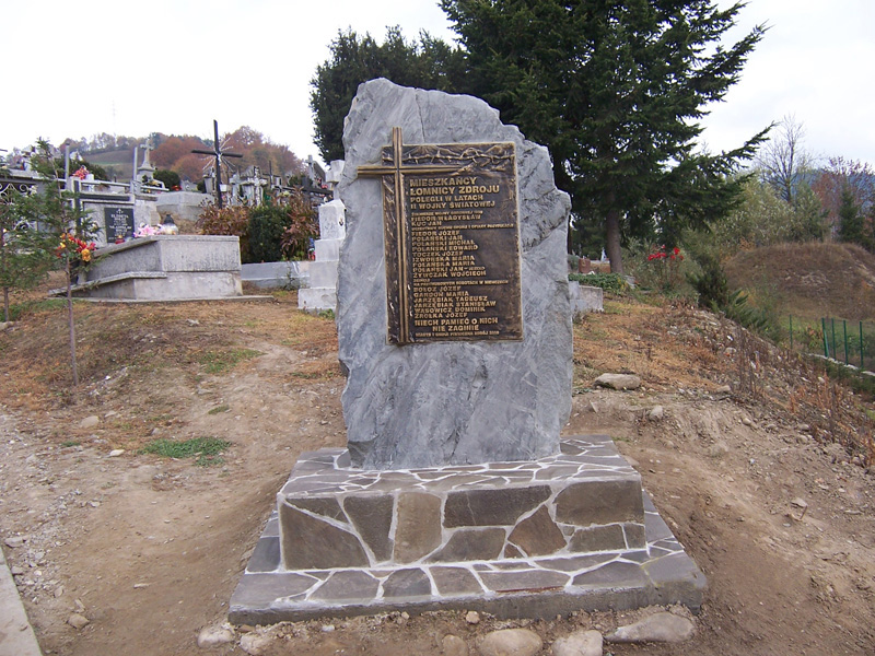 Pomnik na cmentarzu w Łomnicy - Zdroju Pomnik upamiętniający mieszkańców Łomnicy - Zdrój poległych w latach II Wojny Światowej. |