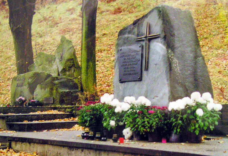 Pomnik na starym cmentarzu w Piwnicznej - Zdroju Zbiorowa mogiła, w której pochowano zakładników rozstrzelanych na terenie Piwnicznej w czasie II Wojny Światowej. |