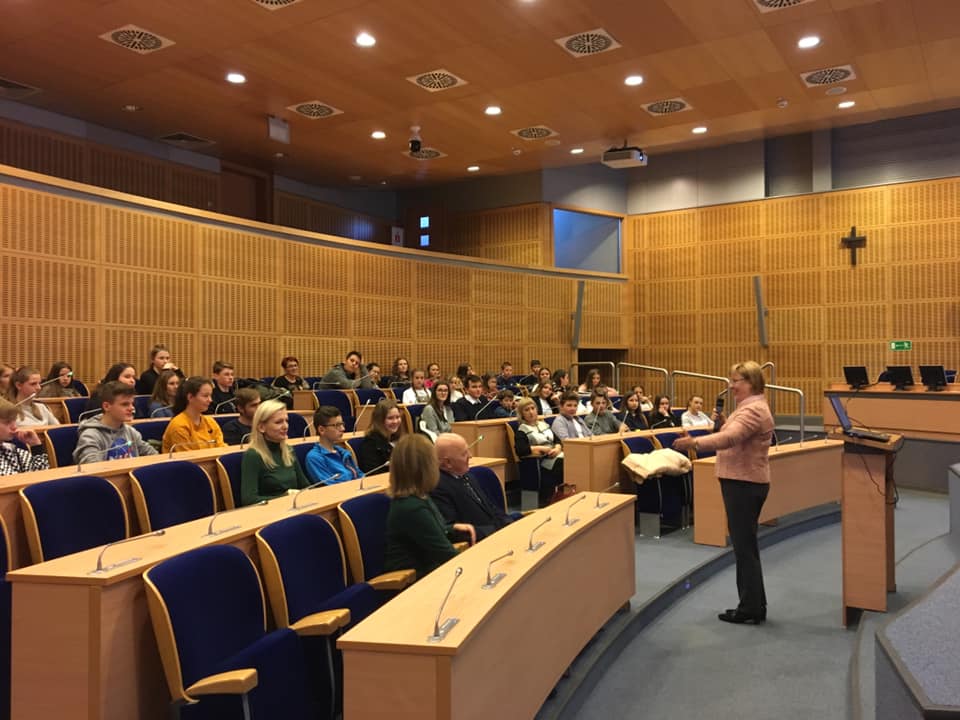 Była to niezwykle cenna lekcja z wiedzy o Małopolsce. Uczniowie spotkali się panem Edwardem Czesakiem - wicemarszałkiem. Wykład prowadził dr Jakub Olech – dr politologii, administratywista, wykładowca na Akademii Ekonomicznej w Krakowie.