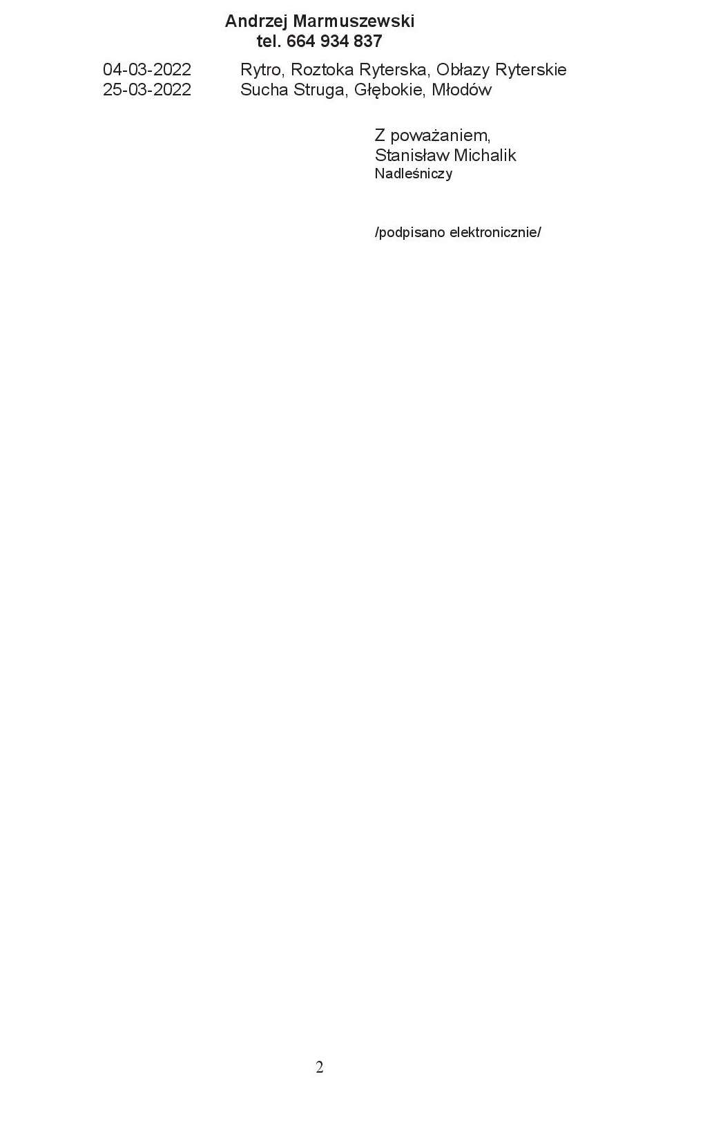 Nadleśnictwo Piwniczna: Harmonogram pracy w terenie marzec 2022