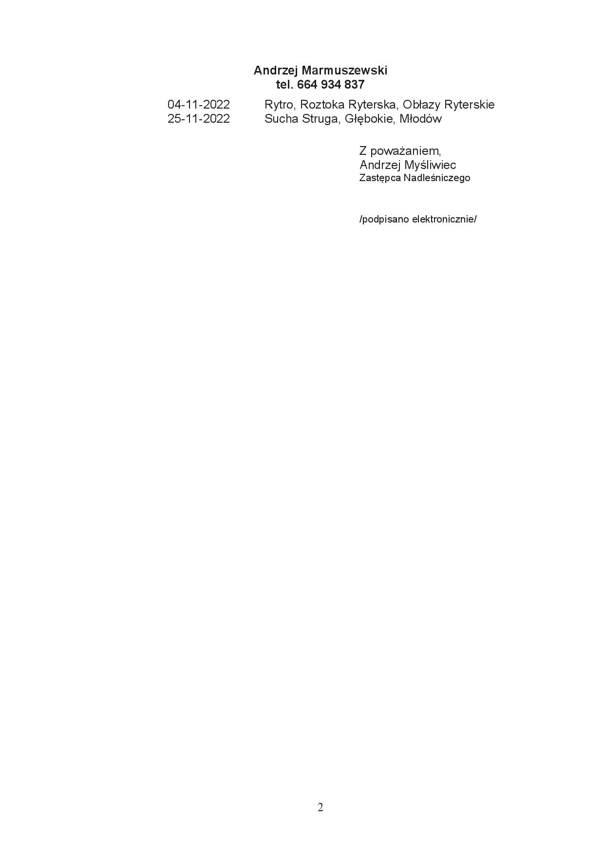 Nadleśnictwo Piwniczna: Harmonogram pracy w terenie w okresie listopad 2022