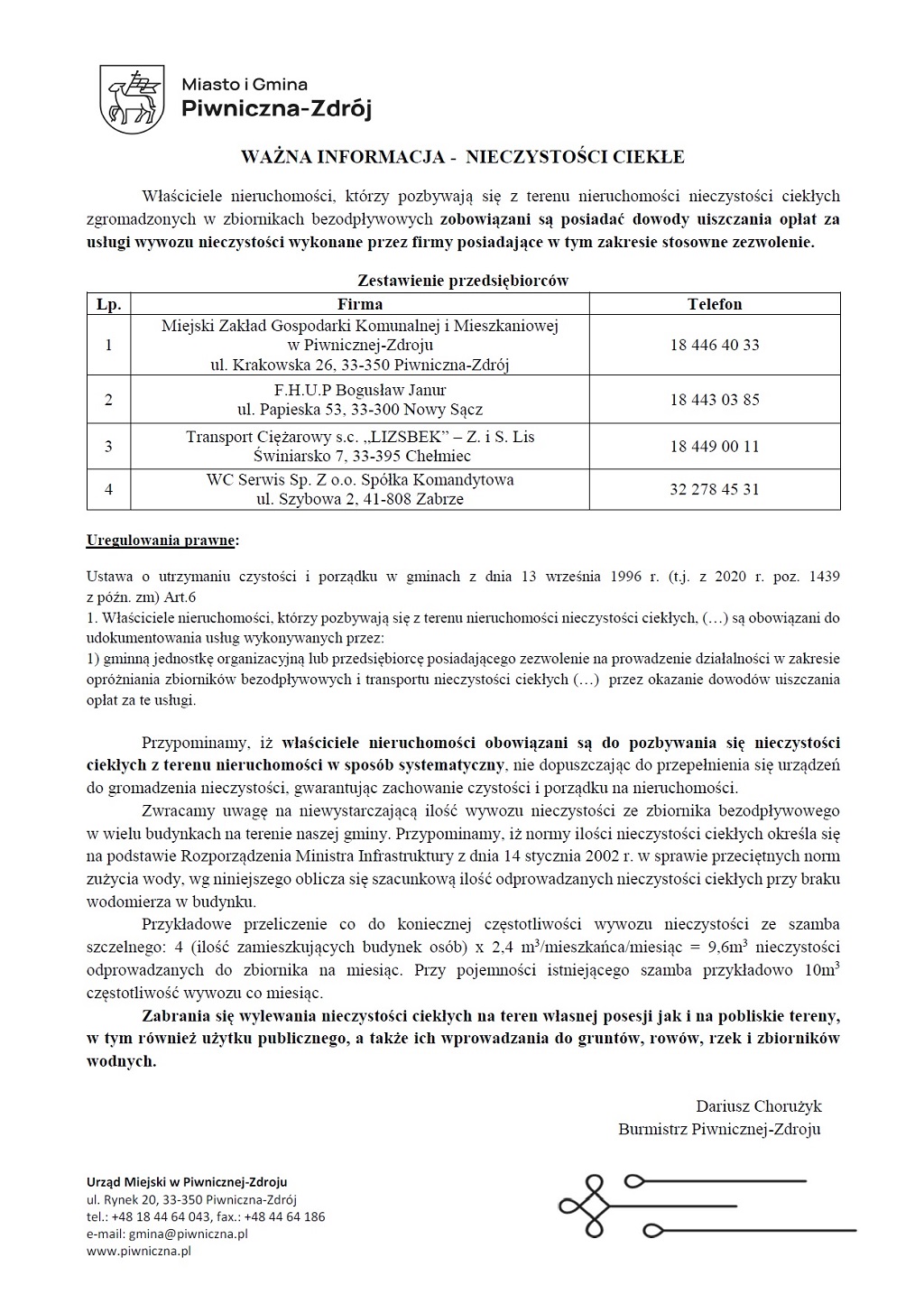 - Cennik 2025 - na odbiór i wywóz nieczystości ciekłych