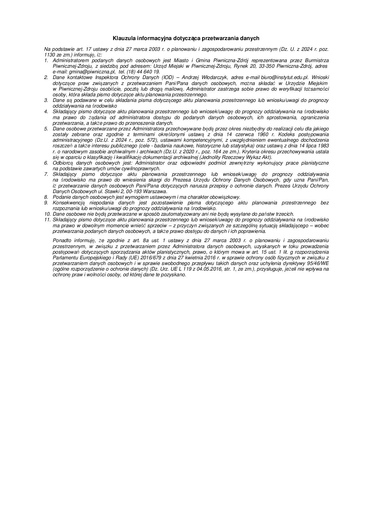 - OGŁOSZENIE BURMISTRZA PIWNICZNEJ-ZDROJU o przystąpieniu do sporządzenia miejscowego planu zagospodarowania przestrzennego obejmującego część miasta i gminy Piwniczna-Zdrój
