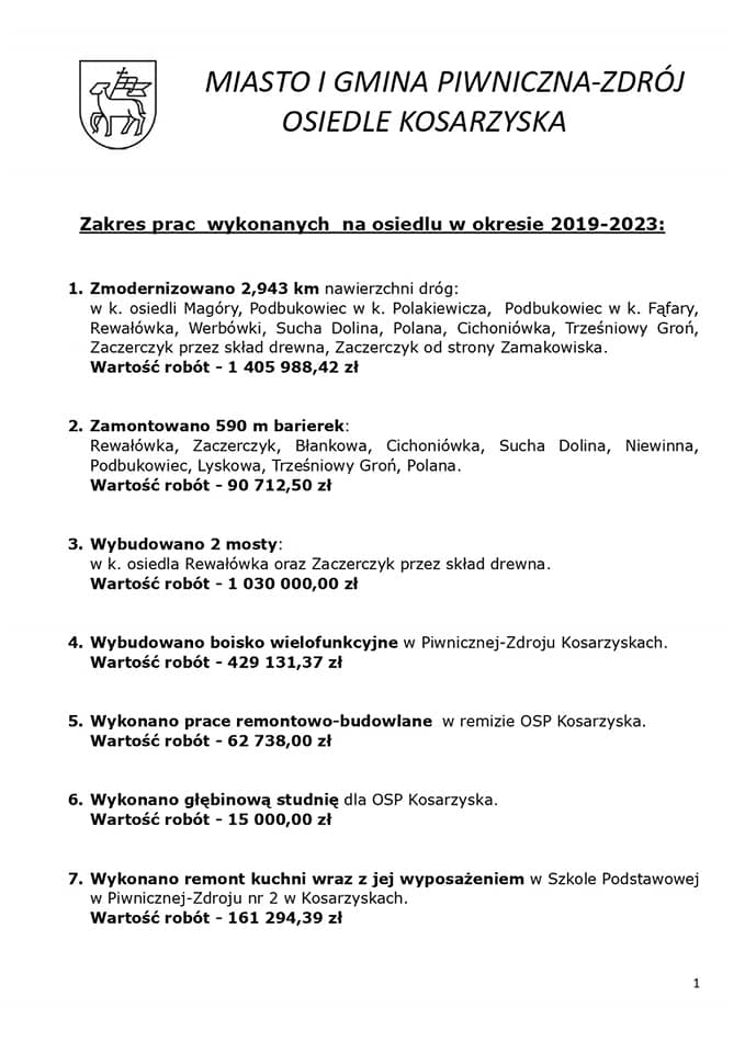 MiGPZ Osiedle Kosarzyska. Zakres prac wykonanych na osiedlu w okresie 2019-2023