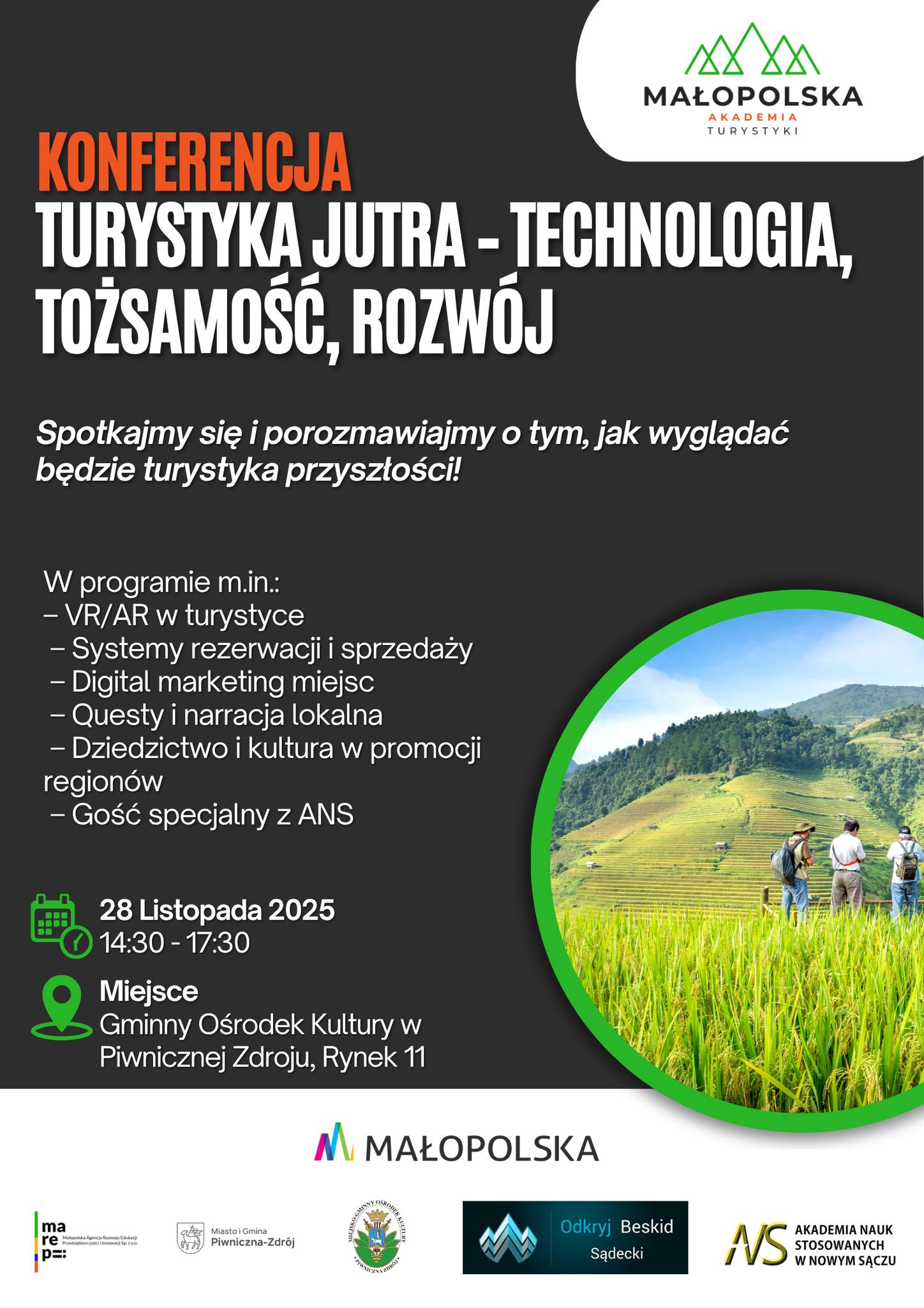 Dziś 28 listopada 2025 r. w Miejsko-Gminny Ośrodku Kultury w Piwnicznej-Zdroju odbyło się oficjalne otwarcie konferencji pt. „Turystyka Jutra – Technologia, Tożsamość, Rozwój”. Wydarzenie podkreśla znaczenie nowoczesnych technologii i digital marketingu w kształtowaniu przyszłości branży turystycznej.