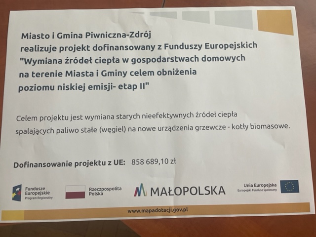 W dniu dzisiejszym tzn. 15 lipca 2022 r. odbyło się w Urzędzie Miejskim w Piwnicznej-Zdroju podpisanie umów z pierwszymi 10 beneficjentami projektu pn. "Wymiana źródeł ciepła w gospodarstwach domowych na terenie Miasta i Gminy Piwniczna-Zdrój celem obniżenia poziomu niskiej emisji- etap II" realizowanego w ramach Regionalnego Programu Operacyjnego Województwa Małopolskiego na lata 2014-2020 (RPO WM).