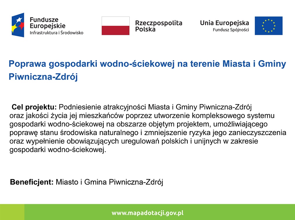 Poprawa gospodarki wodno-ściekowej na terenie Miasta i Gminy Piwniczna-Zdrój