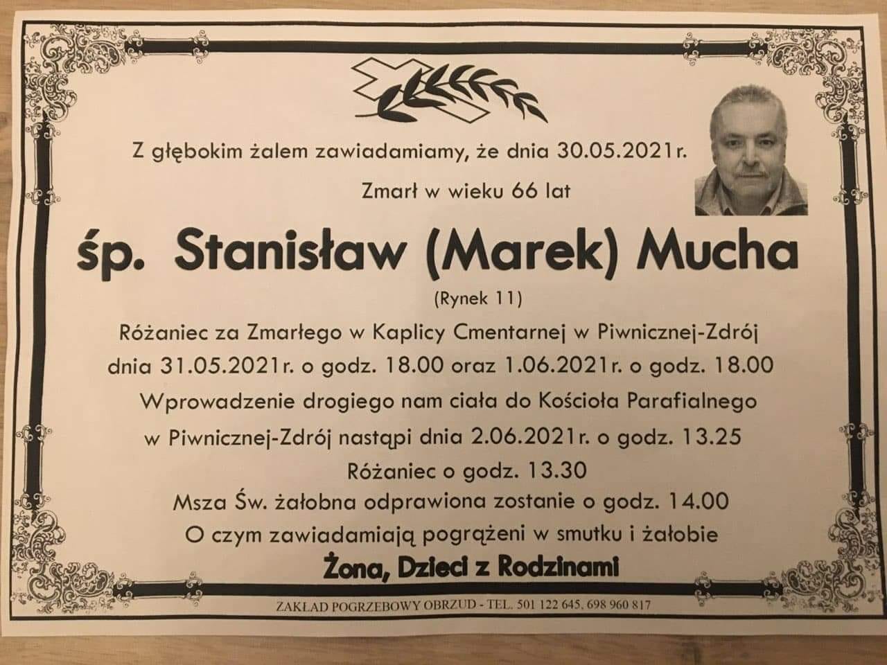 Pożegnanie śp. Stanisława Muchy, wiadomość o Jego śmierci ze smutkiem przyjęliśmy 30 maja 2021 r. Miał 66 lat.
