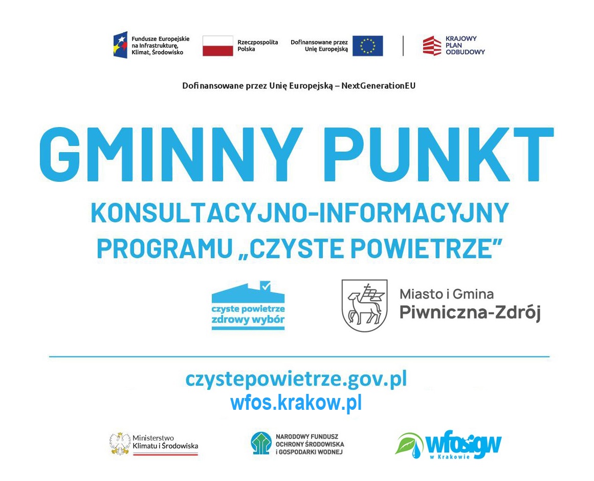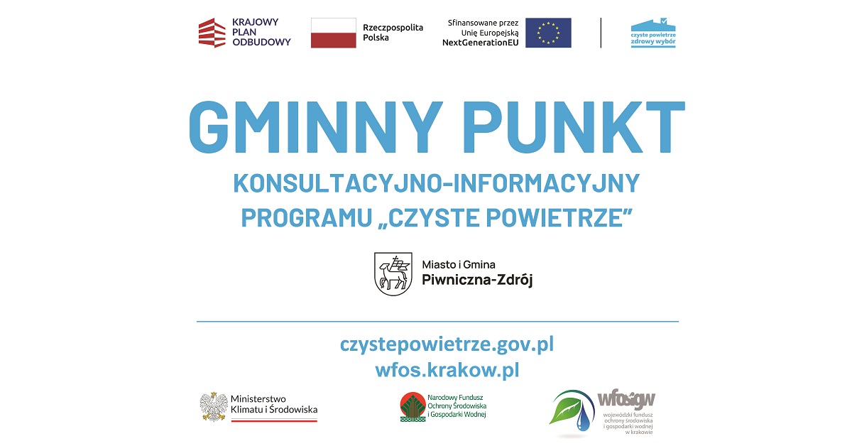 Punkt Konsultacyjny dla Miasta i Gminy Piwniczna-Zdrój jest czynny od poniedziałku do piątku w godzinach pracy Urzędu Miejskiego od godz. 7:00 do godz. 15:30 na stanowiskach pracy (zmiennie) 7:00 – 15:00 i 7:30 – 15:30. W celu wypełnienia wniosku o dofinansowanie bardzo prosimy o wcześniejsze umówienie wizyty z pracownikiem obsługującym punkt. Kontakt telefoniczny: 18 334 77 08 lub email aporebska@piwniczna.pl