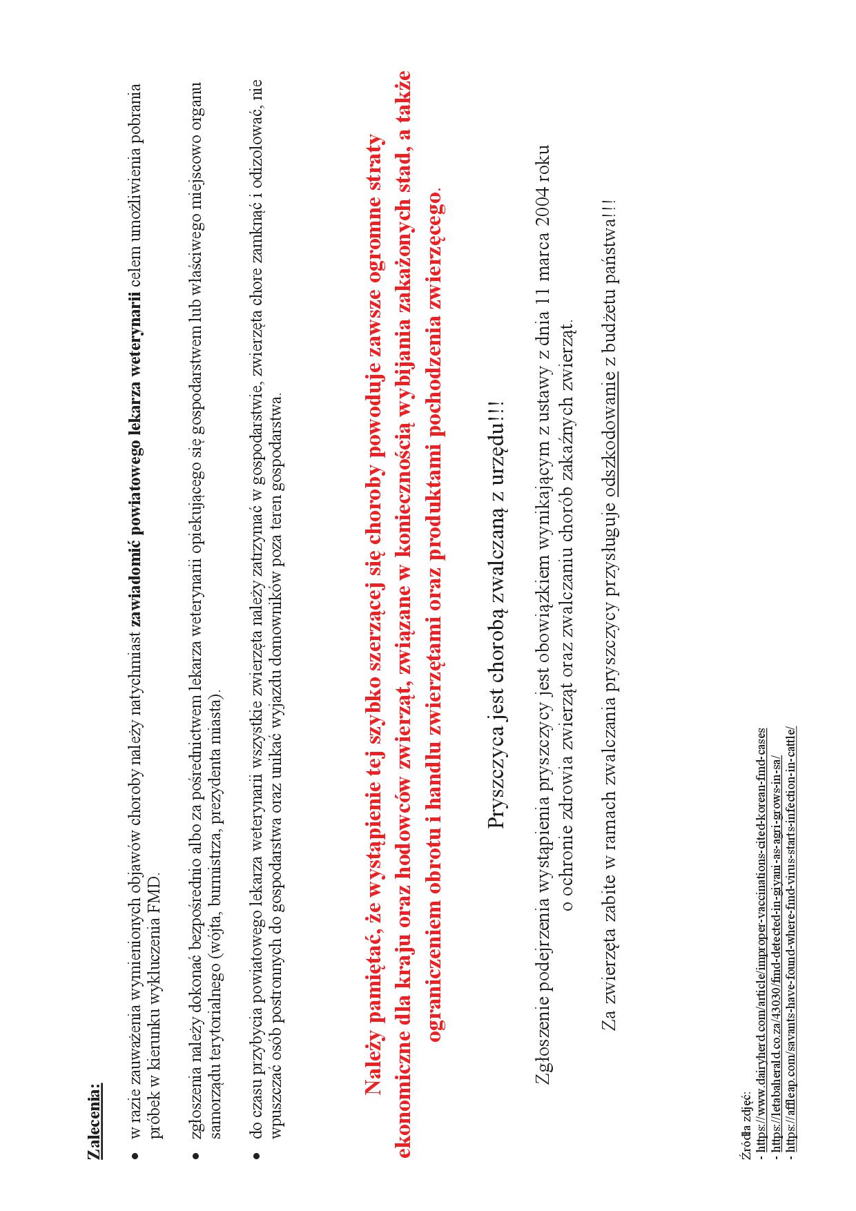 Apelujemy do rolników, hodowców, przetwórców i przedstawicieli handlu o wyjątkową ostrożność i zachowanie nadzwyczajnych środków prewencji. Szybkie rozpoznanie choroby stanowi pierwszy i najważniejszy etap jej zwalczania!