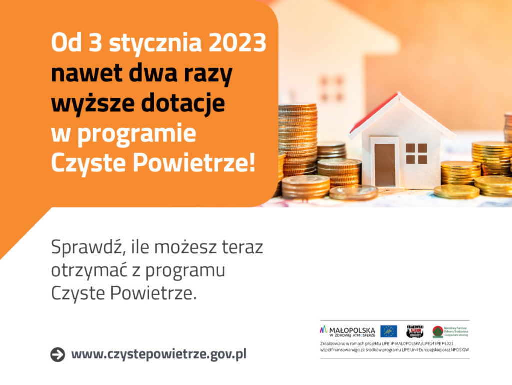 3 stycznia 2023 r. wchodzą w życie zmiany w programie Czyste Powietrze. Dzięki nim zwiększy się wysokość dofinansowania do wymiany pieca i ocieplenia domu. Podwyższone zostaną także progi dochodowe oraz pojawi się możliwość złożenia kolejnego wniosku o dofinansowanie dla tych, którzy już wcześniej skorzystali z Programu.