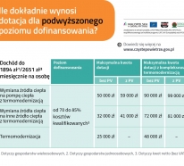 - Próg dochodowy przy dofinansowaniu podstawowym wzrasta do 135 tys. zł, a maksymalna kwota dotacji wynosi 66 tys. zł