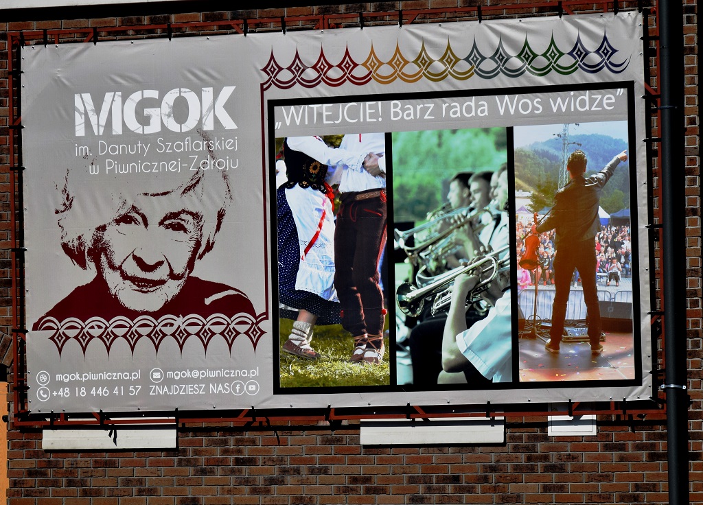 Od kilku dni wszystkich odwiedzających piwniczański rynek wita serdeczne spojrzenie Danuty Szaflarskiej z grafiki umieszczonej na budynku naszego Ośrodka Kultury, którego jest patronką. Jej słowa „Witejcie! Barz rada wos widze!” dodają otuchy w tych trudnych czasach zmagań z wirusem.