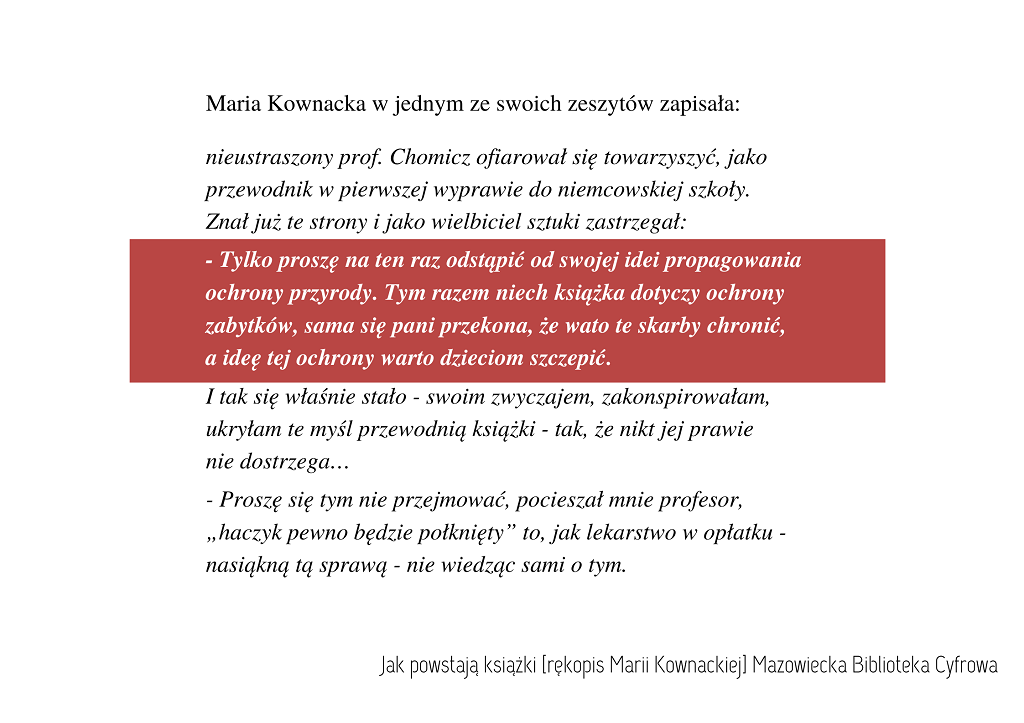 Możemy tylko powtórzyć za Witoldem Chomiczem, że warto te skarby chronić i dzieło, które wspólnie z Marią Kownacką rozpoczęli kontynuować.