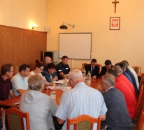Grzegorz Chochla - Dyrektor OPS przybliżył kwestie związane z pomocą osobom starszym i niedołężnym. Dodatkowo omówił kwestie związane z programem dożywiania dzieci i osób potrzebujących „Posiłek w szkole i w domu” oraz Programem Operacyjnym – Pomoc Żywnościowa. Przedyskutowana została również sprawa osób nietrzeźwych w kontekście nadchodzącej zimy - jakie powinny zostać podjęte starania, aby uniknąć zagrożenia związanego z niskimi temperaturami.