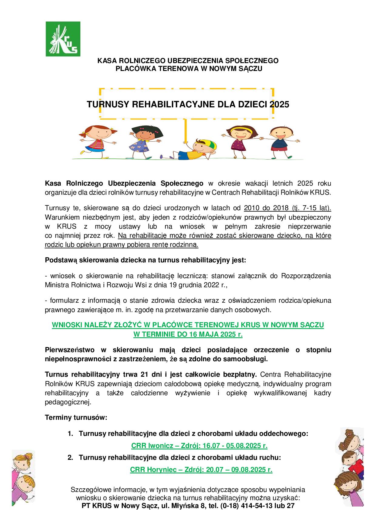 Turnus rehabilitacyjny dla dzieci osób ubezpieczonych w KRUS
