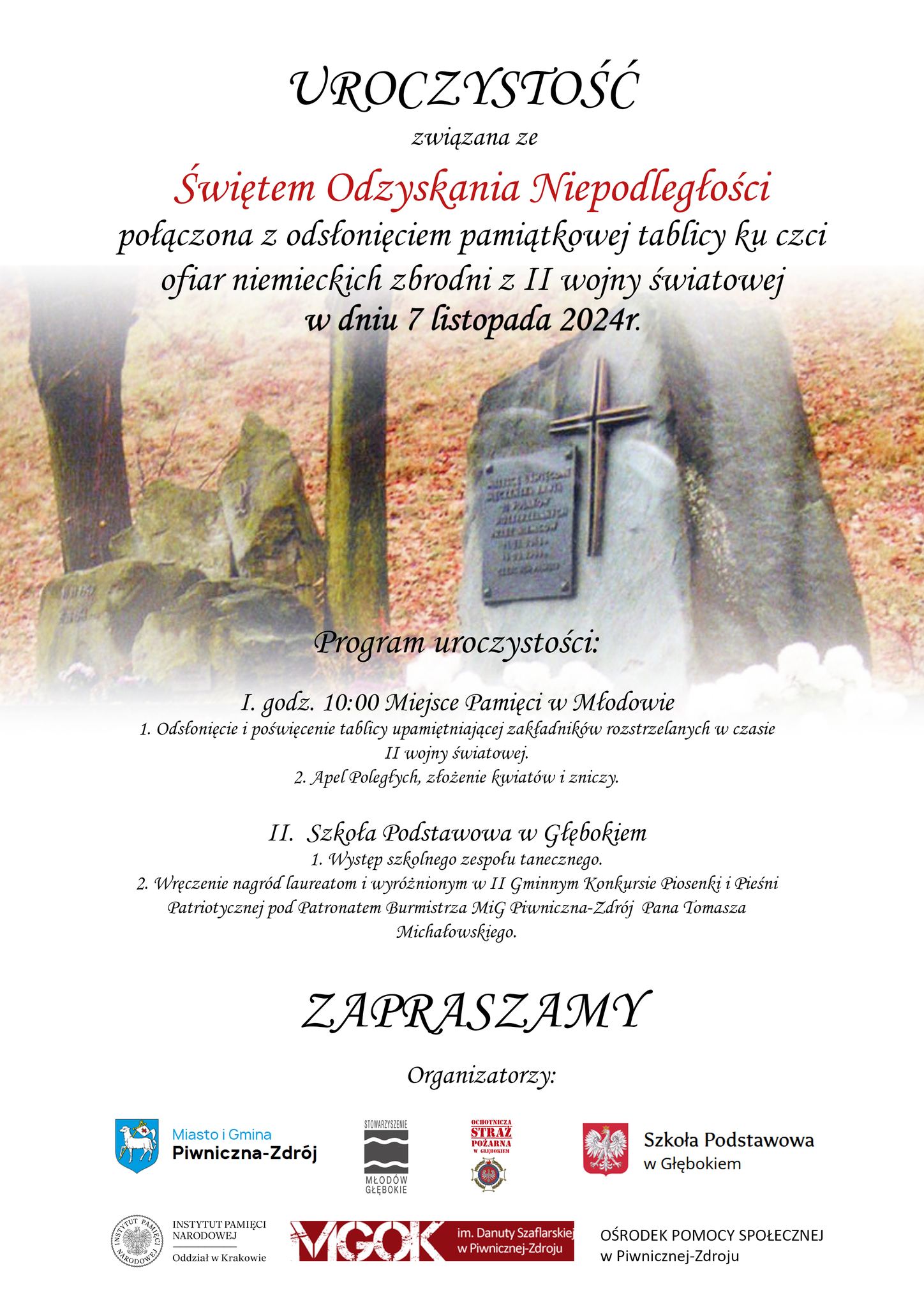 Uroczystość odsłonięcia pamiątkowej tablicy ku czci ofiar niemieckich zbrodni z okresu II WŚ w Młodowie dnia 07.11.2024 r.