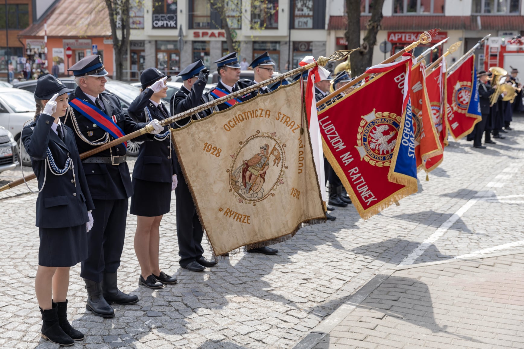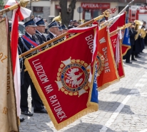 Relacja foto z uroczystości 3 maja. Święto Konstytucji. Obchody Ogólnopolskiego Dnia Strażaka. 03.05.2022 r.