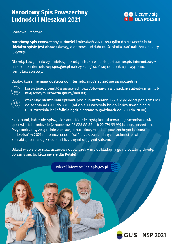 UWAGA! Narodowy Spis Powszechny Ludności i Mieszkań 2021 trwa tylko do 30 września br.