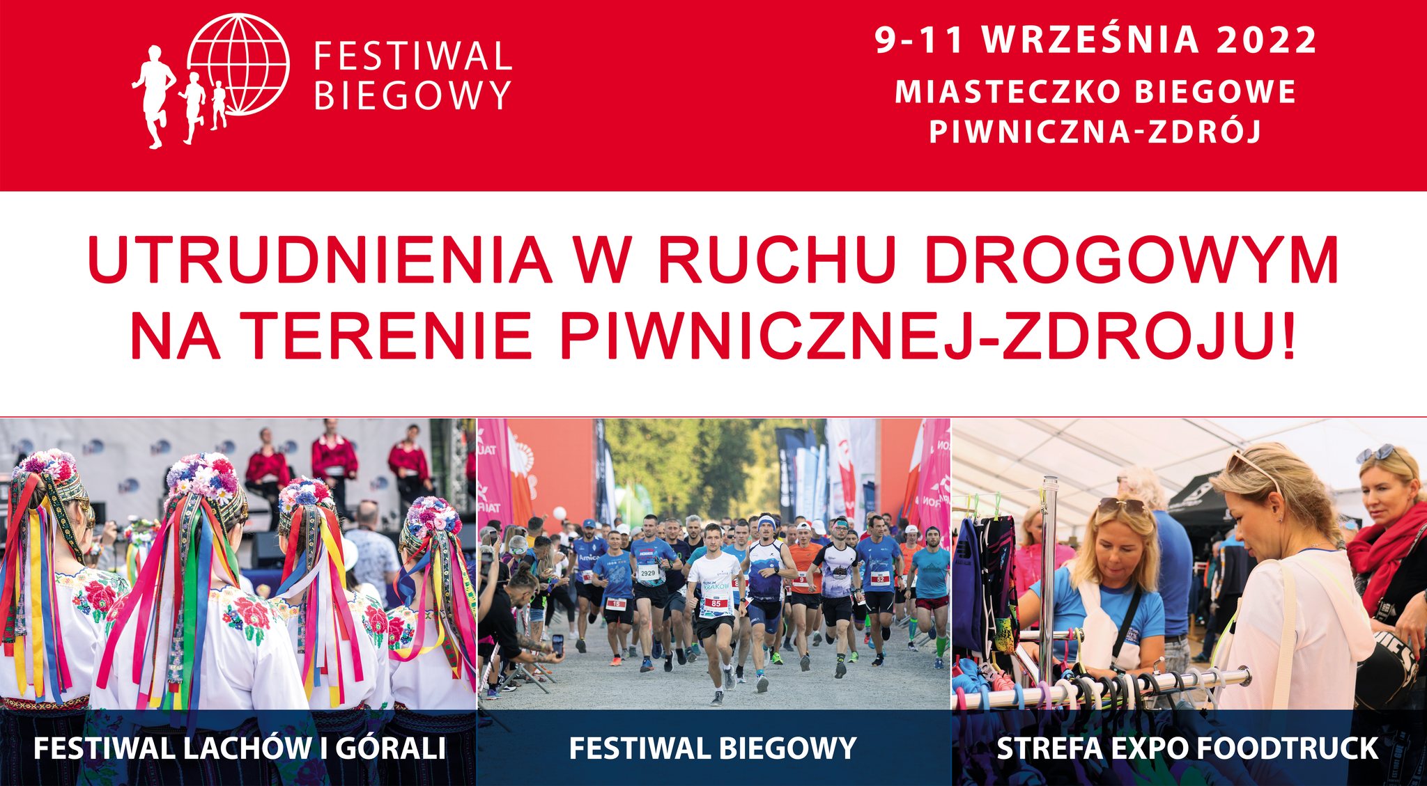 UWAGA! Utrudnienia w ruchu drogowym w dniach 9-11.09.2022 Festiwal Biegowy w Piwnicznej-Zdroju