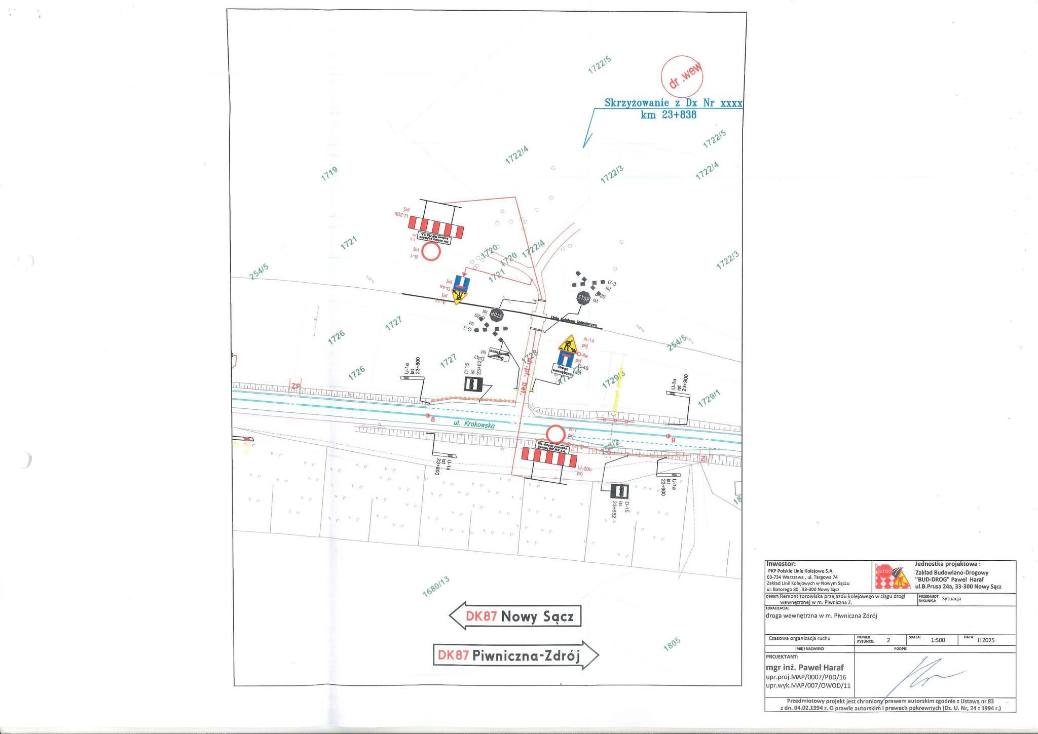 Projekt czasowej zmiany organizacji ruchu na czas naprawy przejazdu kolejowego w ciągu drogi gminnej ul. Nadbrzeżna w m. Piwniczna-Zdrój - Zamknięcie odcinka drogi gminnej na czas wymiany podtorza i szyn