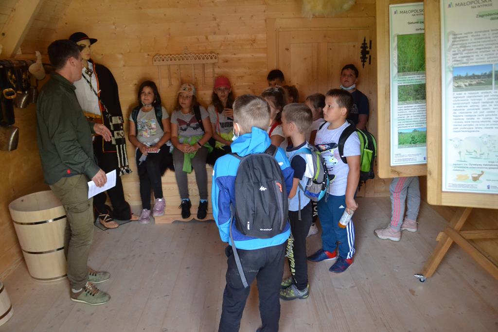 Tematem zajęć była historia pasterstwa w Karpatach oraz kultura pasterska związana z czarną owcą w Piwnicznej-Zdroju. Dzieci z entuzjazmem i zaciekawieniem zwiedzały bacówkę, mierzyły tradycyjne stroje góralskie oraz próbowały swoich sił w grze na tradycyjnych instrumentach.