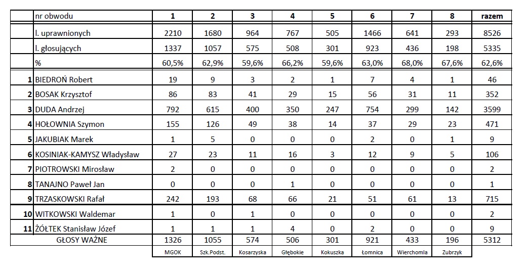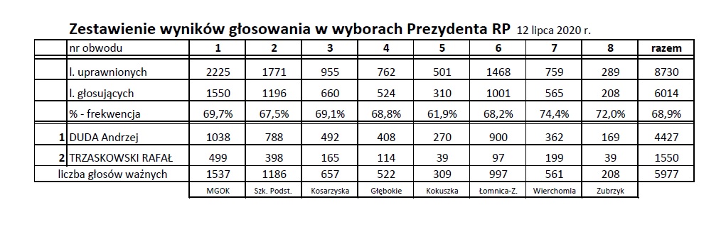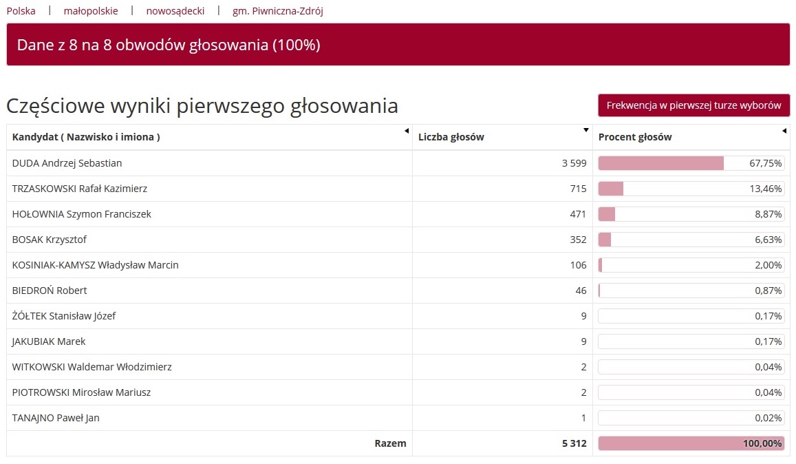 Wyniki II-tura Gmina Piwniczna-Zdrój: Wybory Prezydenta Rzeczypospolitej Polskiej 2020 r. Głosowanie odbyło się dnia 12 lipca 2020 r. między godziną 7:00 a 21:00