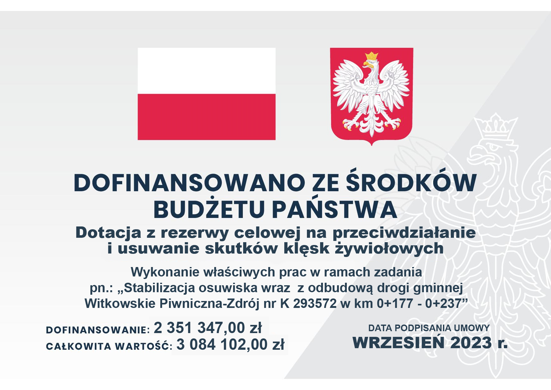 Wykonanie właściwych prac w ramach zadania pn.: „Stabilizacja osuwiska wraz z odbudową drogi gminnej Witkowskie Piwniczna-Zdrój nr K 293572 w km 0+177-0+237”