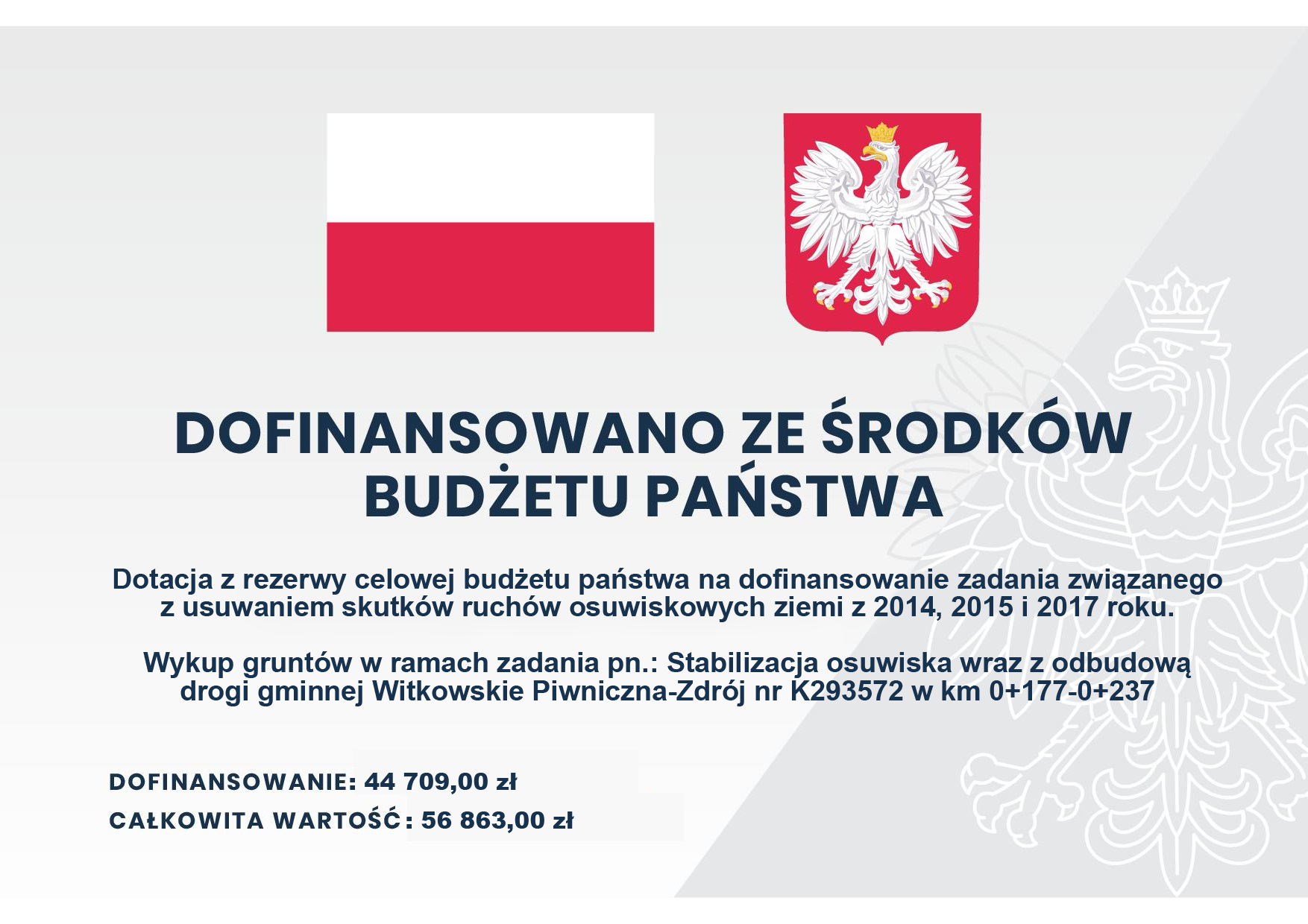 Wykup gruntów w ramach zadania pn.: Stabilizacja osuwiska wraz z odbudową drogi gminnej Witkowskie Piwniczna-Zdrój nr K293572 w km 0+177-0+237
