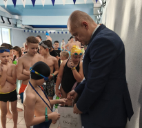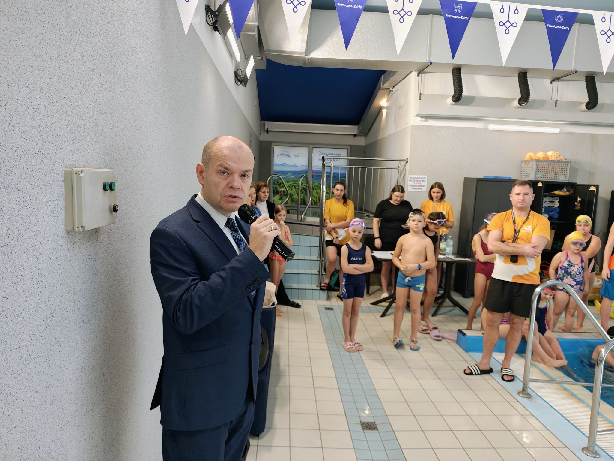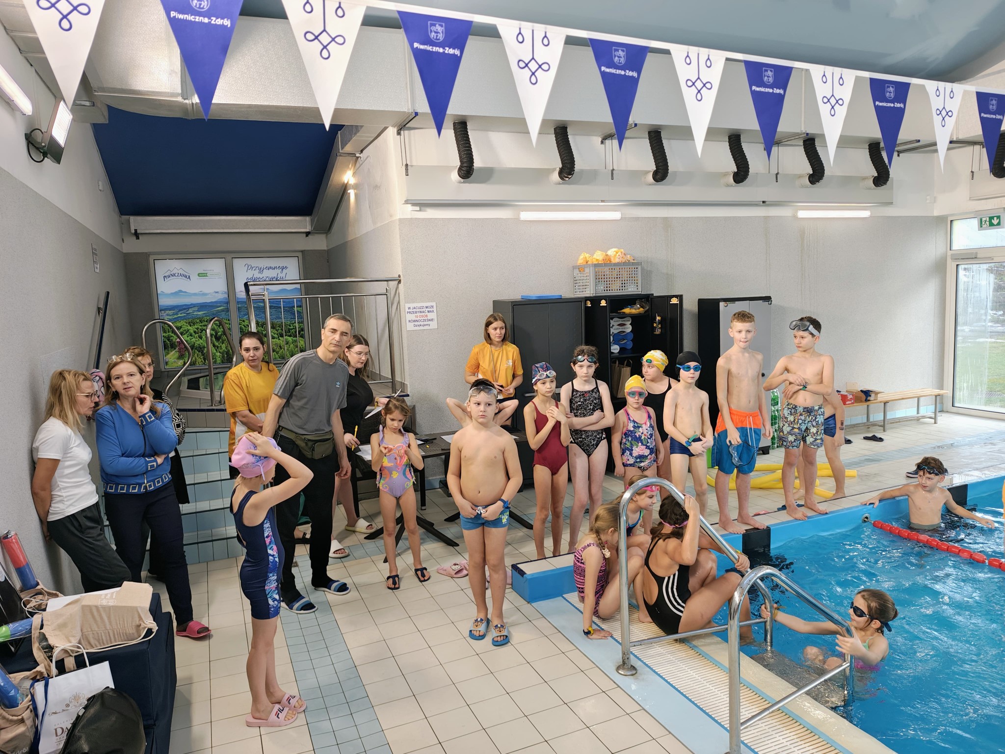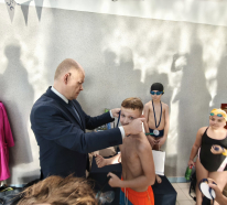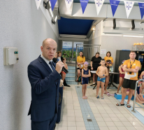 Nagrody dla młodych sportowców wręczali Pani Joanna Świgut-Wójtowicz oraz jej syn Pan Marcin Wójtowicz wraz z Burmistrzem Piwnicznej-Zdroju Tomaszem Michałowskim. W zawodach wzięło udział blisko 43 młodych adeptów pływania ze szkół podstawowych z terenu Miasta i Gminy Piwnicznej-Zdroju.
