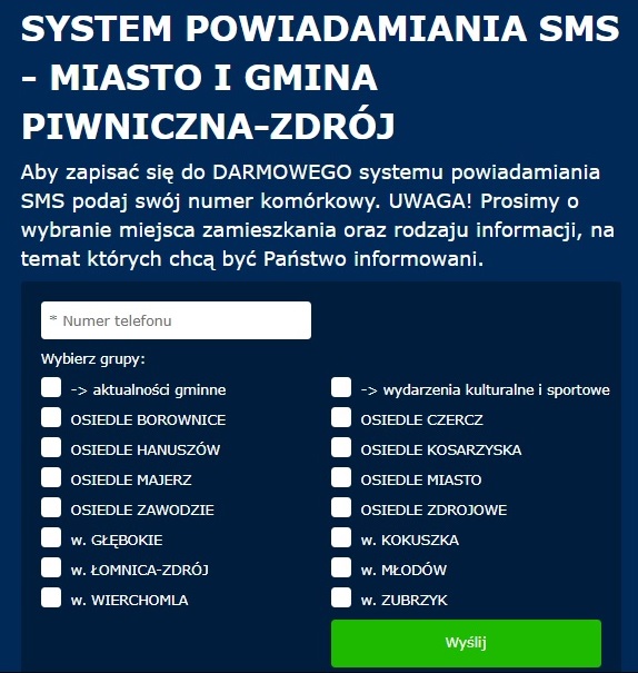 ZAPISZ SIĘ !!! System powiadamiania SMS - Miasto i Gmina Piwniczna-Zdrój