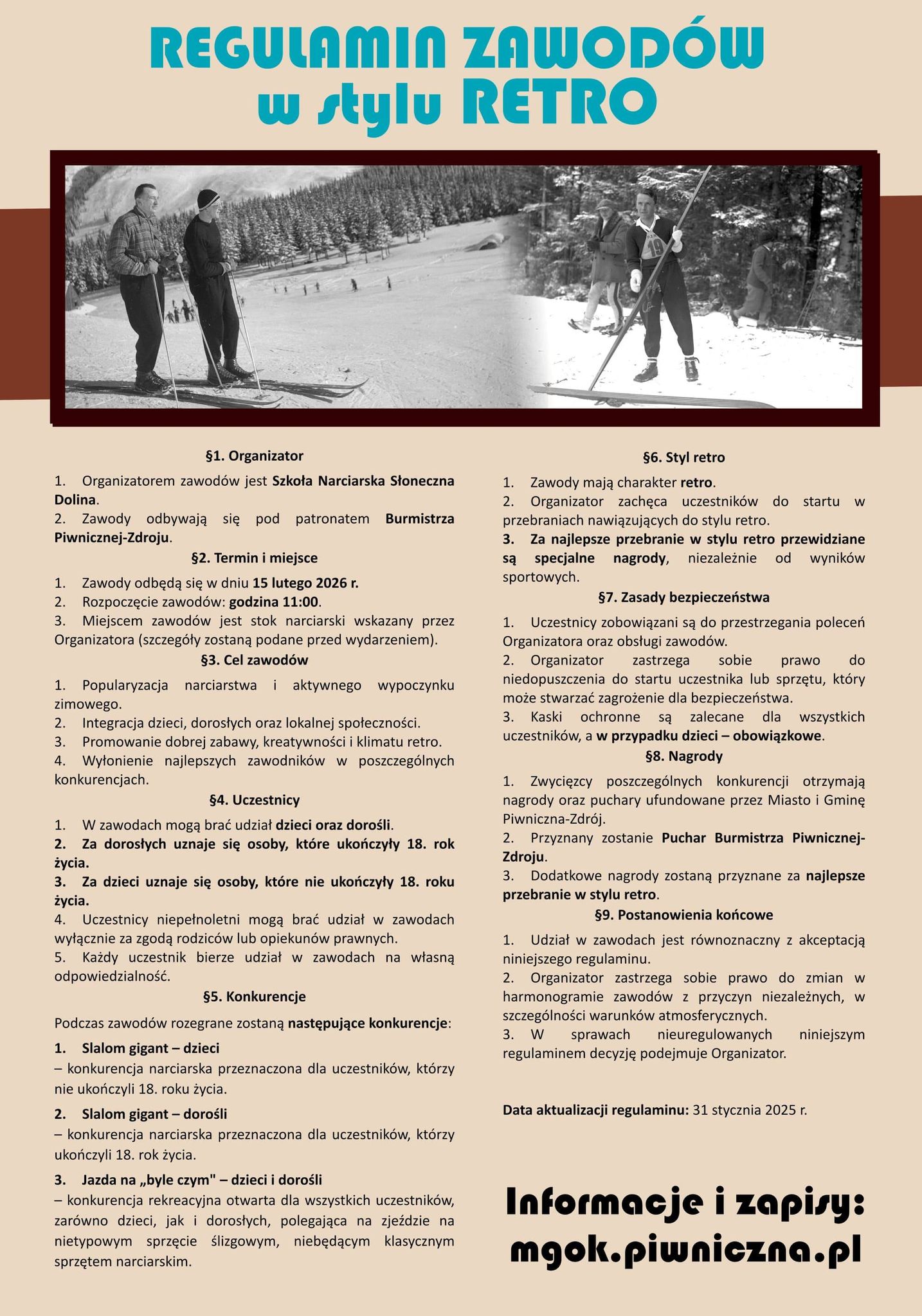 UWAGA! ZAWODY w stylu RETRO o PUCHAR Burmistrza Piwnicznej-Zdroju TYMCZASOWO ODWOŁANE!!!