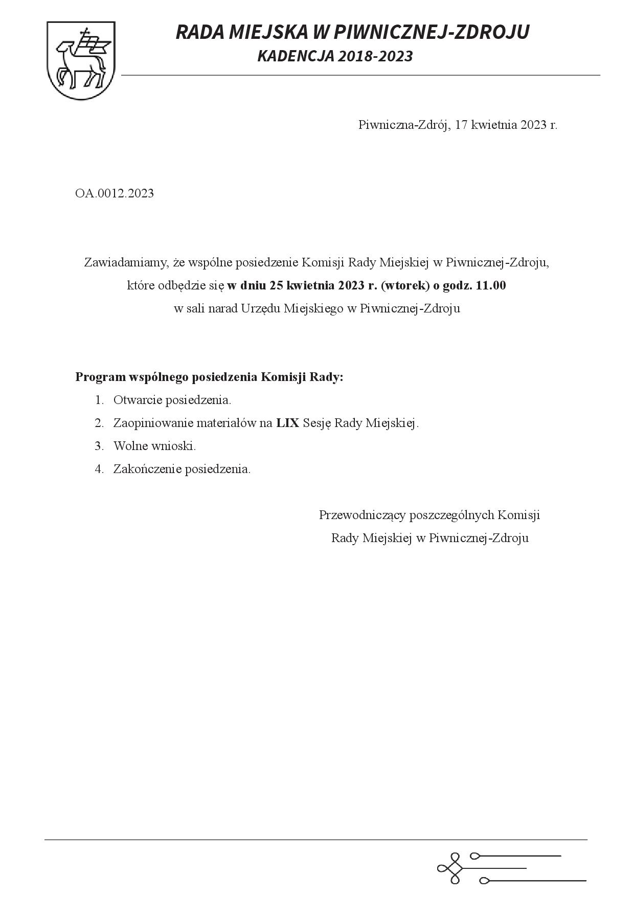 ZAWIADOMIENIE: LIX Sesja Rady Miejskiej w Piwnicznej-Zdroju 25.04.2023 r. UWAGA! Aktualizacja porządku obrad