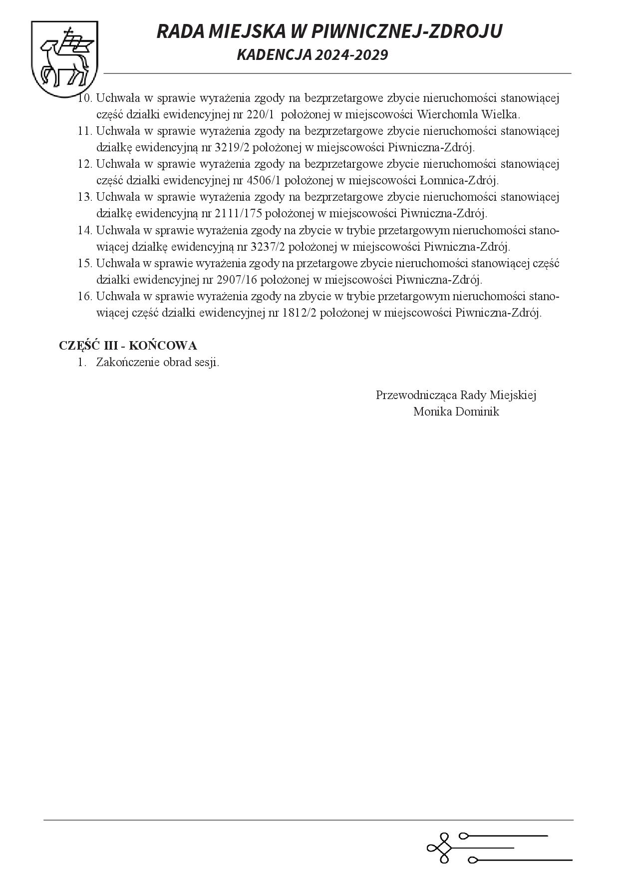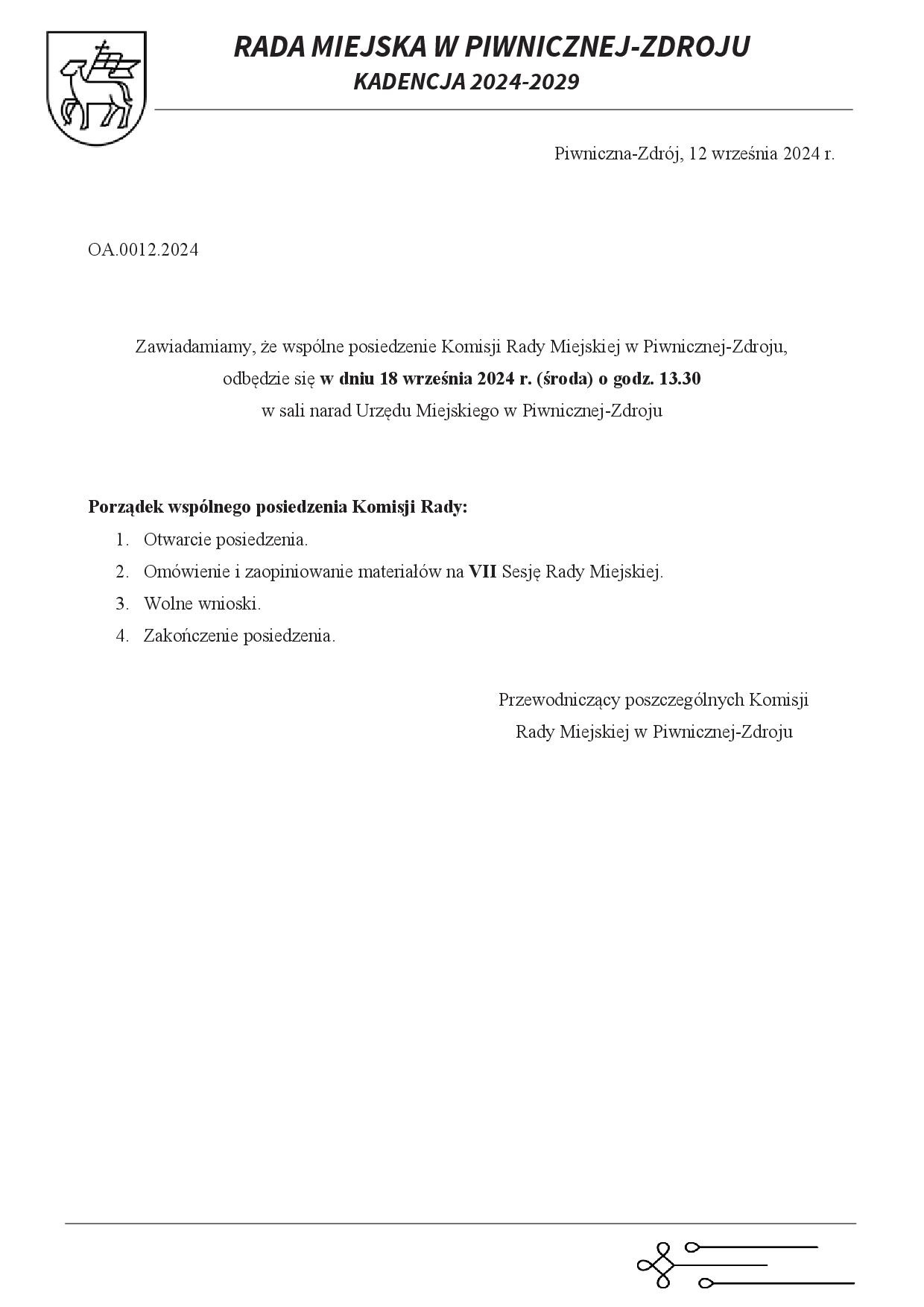 - PORZĄDEK OBRAD VII Sesja Rady Miejskiej w Piwnicznej-Zdroju w dniu 18.09.2024 r. (środa) o godz. 15:30
