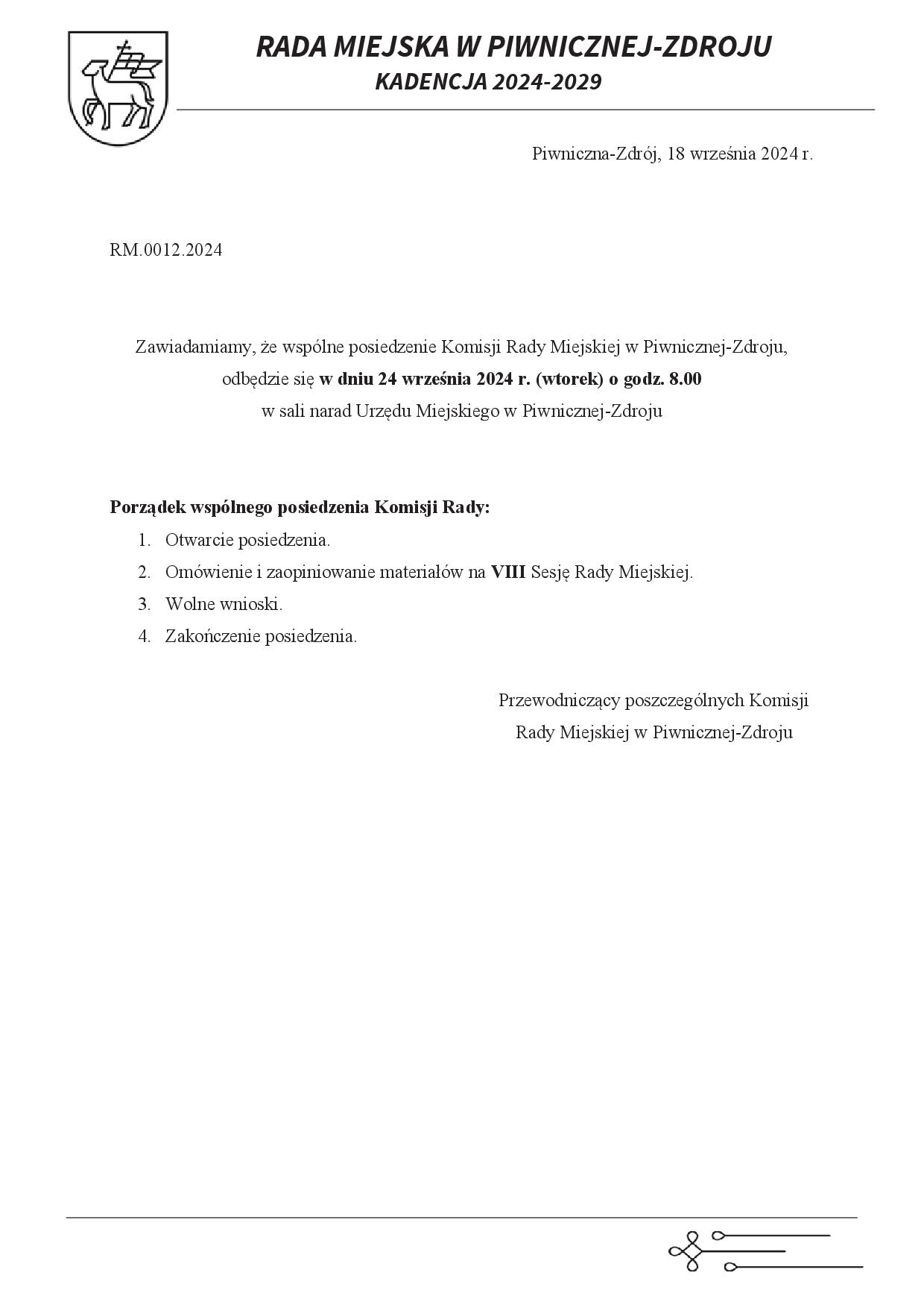 - ZAWIADOMIENIE VIII Sesja Rady Miejskiej w Piwnicznej-Zdroju w dniu 26.09.2024 r.