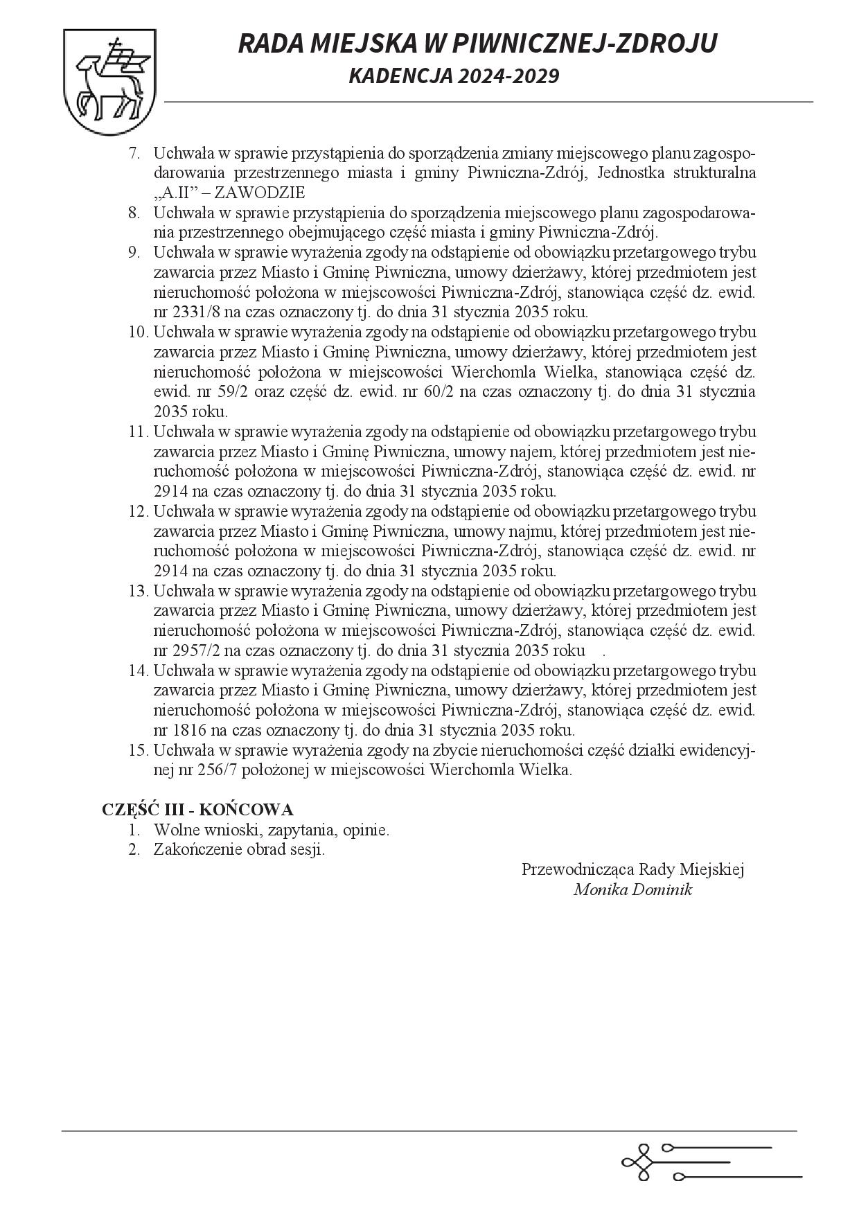 - 8. Uchwała w sprawie przystąpienia do sporządzenia miejscowego planu zagospodarowa-nia przestrzennego obejmującego część miasta i gminy Piwniczna-Zdrój.