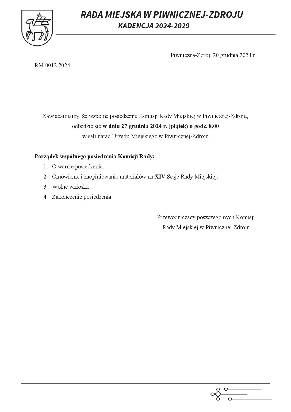 - ZAWIADOMIENIE: XIV Sesja Rady Miejskiej w Piwnicznej-Zdroju odbędzie się w dniu 30.12.2024 r. godz. 14:00