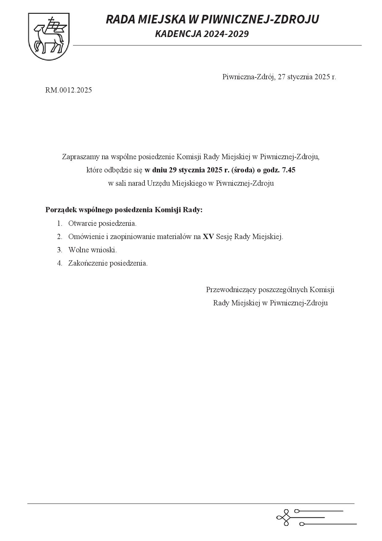 - PORZĄDEK OBRAD XV Sesja Rady Miejskiej w Piwnicznej-Zdroju odbędzie się w dniu 29.01.2025 r. godz. 8:00