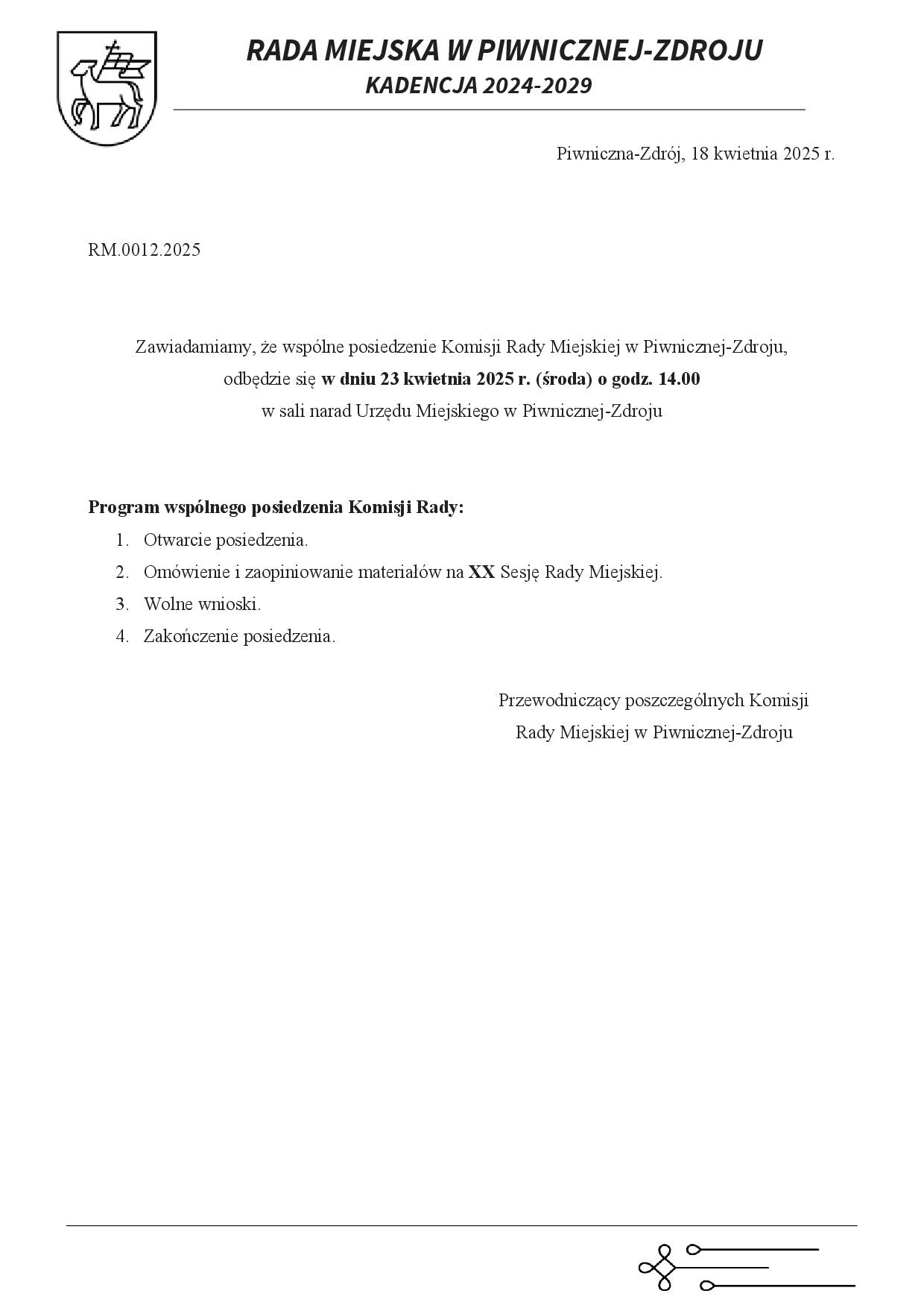- PORZĄDEK OBRAD: XX Sesja Rady Miejskiej w Piwnicznej-Zdroju odbędzie się w dniu 23.04.2025 r. (środa) godz. 15:30