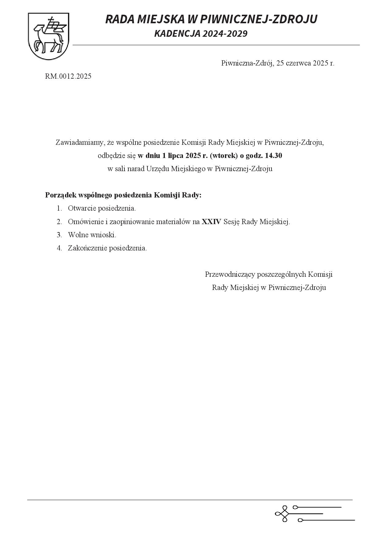 - PORZĄDEK OBRAD: XXIV Sesja Rady Miejskiej w Piwnicznej-Zdroju odbędzie się w dniu 01.07.2025 r.