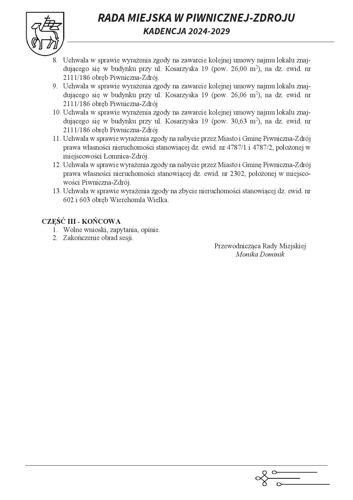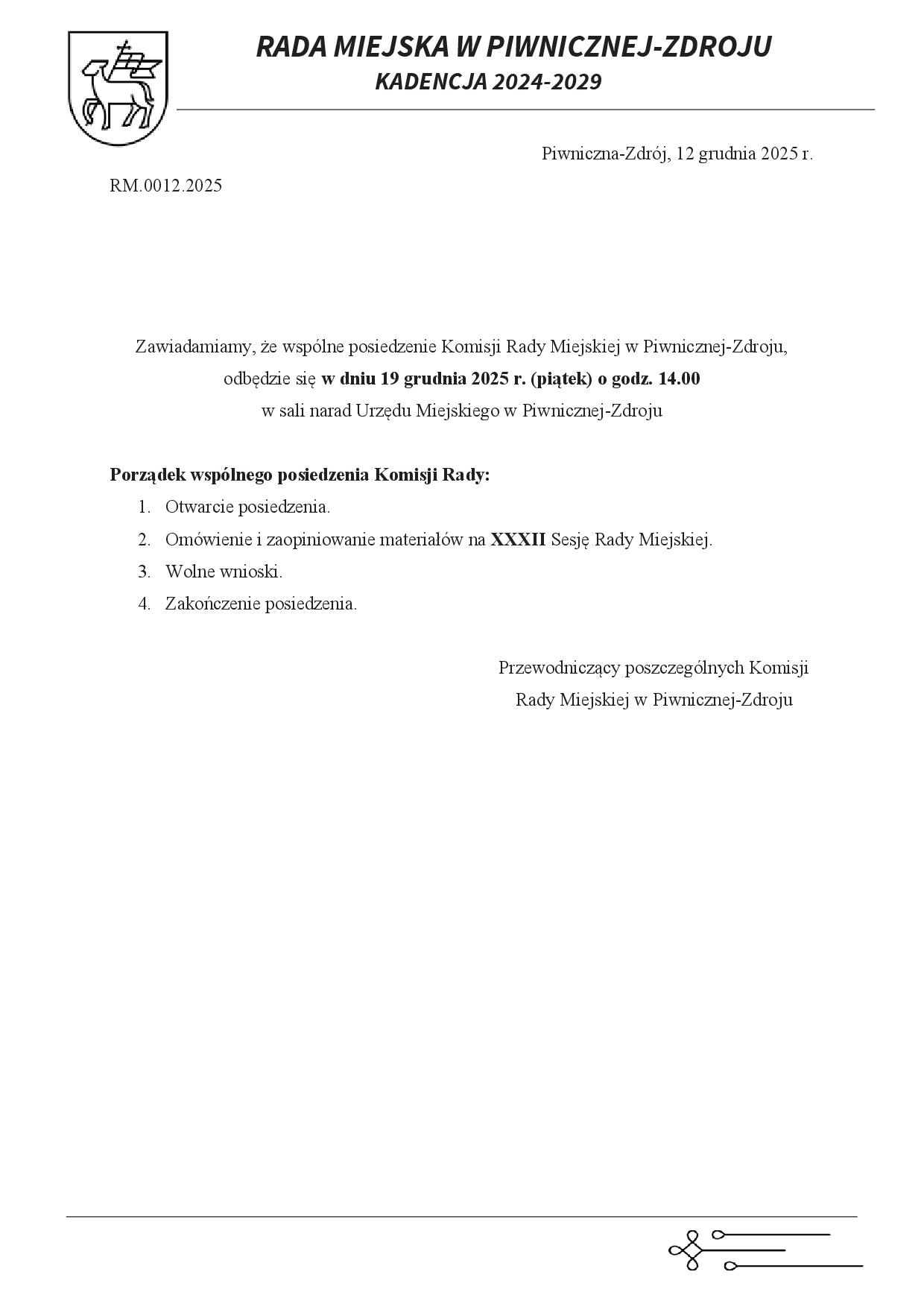 - PORZĄDEK OBRAD XXXII Sesja Rady Miejskiej w Piwnicznej-Zdroju 19.12.2025 r. o godz. 16:00 (piątek)