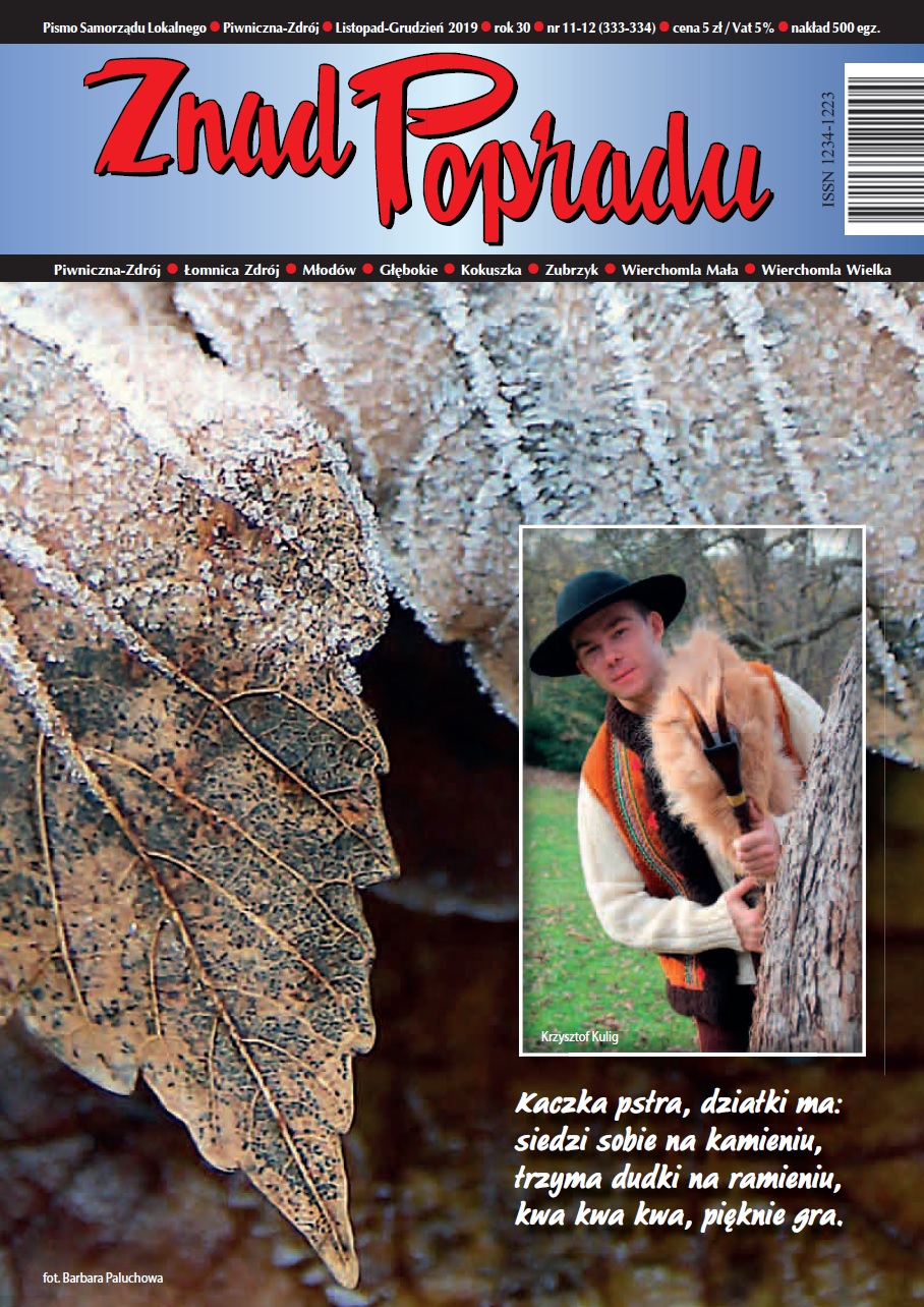 Serdecznie zapraszamy do lektury Pisma Samorządu Lokalnego „Znad Popradu”, Listopad-Grudzień 2019, rok 30, nr 11-12 (333-334).  Informacje: Piwniczna-Zdrój, Łomnica Zdrój, Młodów, Głębokie, Kokuszka, Zubrzyk, Wierchomla Mała, Wierchomla Wielka, Redaktor naczelna Barbara Paluchowa.